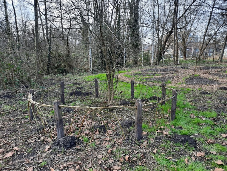 Deze naam verwijst naar een Middeleeuws recht dat rijke edelen en geestelijken aan arme boeren gaven: het Recht van Poot en het Recht van Overpoot. Boeren die zelf maar weinig land hadden, mochten toen langs zandpaden bomen planten voor eigen gebruik. Als hun stukje vol was, mochten ze ook aan de overkant van het pad bomen en struiken planten — dat was het Recht van Overpoot. Deze oude regels zijn nooit officieel afgeschaft. De vrijwilligers van het voedselbos hebben dat slim gebruikt en daarom heet dit deel nu het Land van Overpoot.